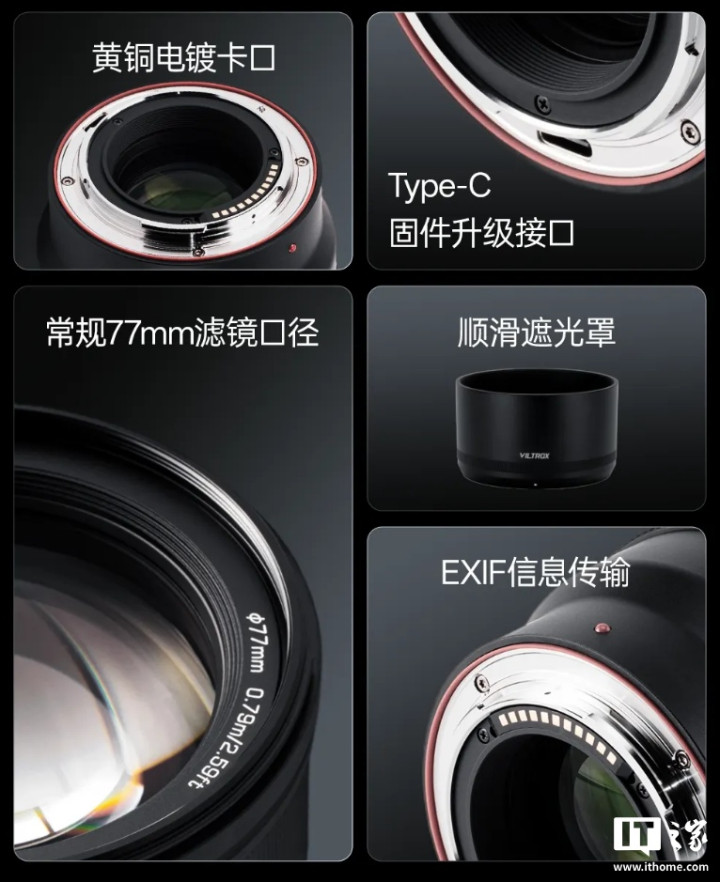 该镜头采用11组15片镜片结构,最近对焦距离0.79m;金属外观、黄铜电镀卡口,配有USB-C固件升级接口。